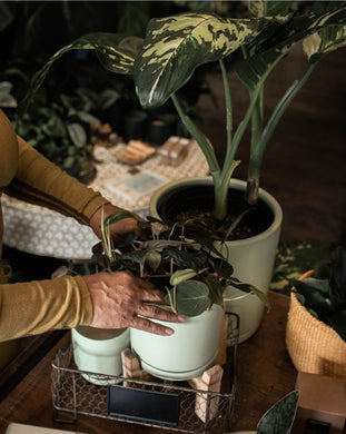 Plant Stand - Mid Level - Adjustable - Black Bamboo